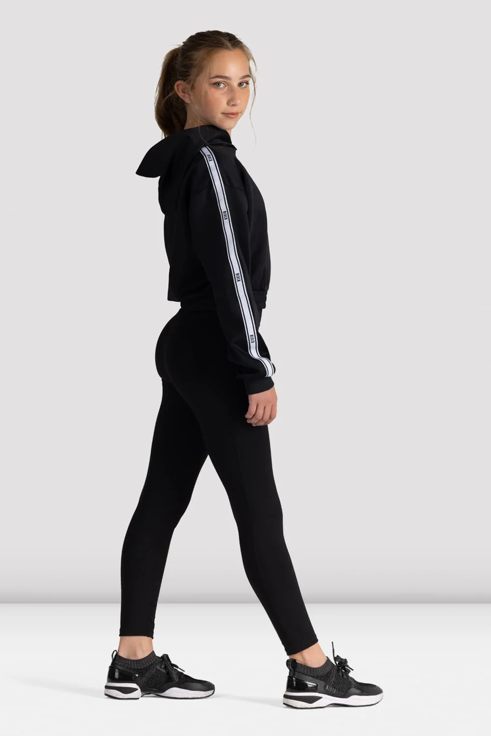 Keep warm and stylish in our Childrens Bloch Logo Studio Hoodie, created to be your perfect studio essential. Featuring branded BLOCH trim along the long sleeve arms, cropped length and rib cuff detailing. Style with our Adult Bloch Logo Track Pant for a complete studio look. Our Studio Tracksuits, designed to keep up with your every move featuring lightweight material with built-in stretch.