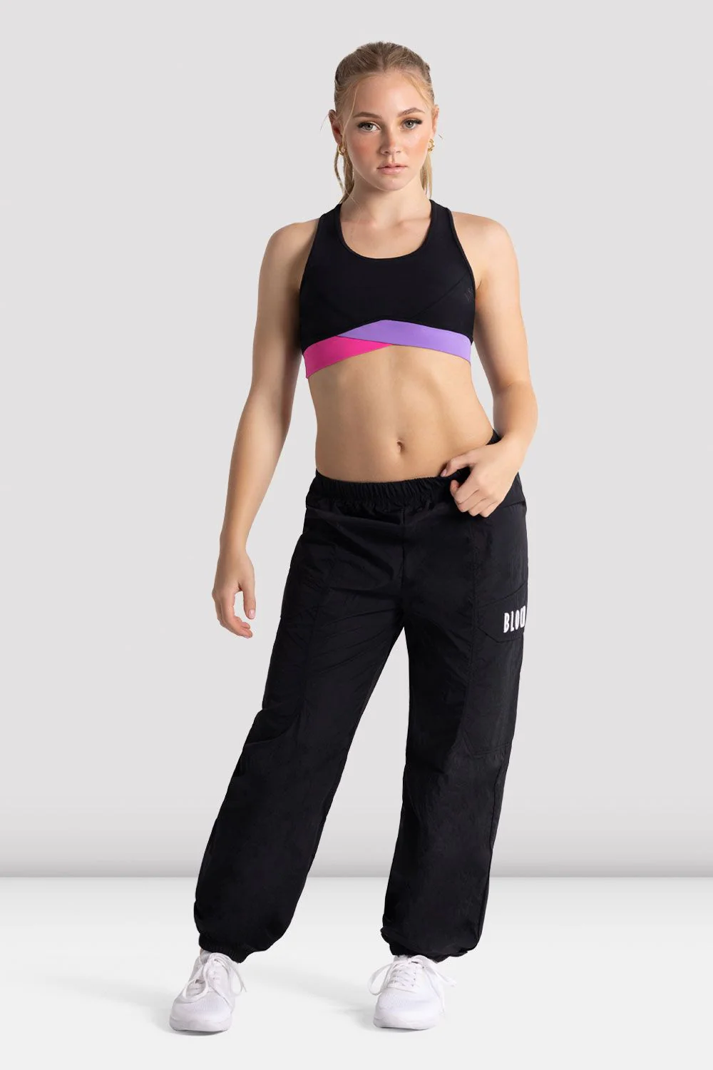 Bloch’s activewear twist on the classic cargo pant style. Our Girls Freestyle Cargo Pant features a high elasticated waistband and cuffed bottoms for a secure fit, with large side pockets for holding all your essentials. Pair with our Girls Freestyle Dynamic Top or Girls Freestyle Dance Top for your perfect dance ensemble.